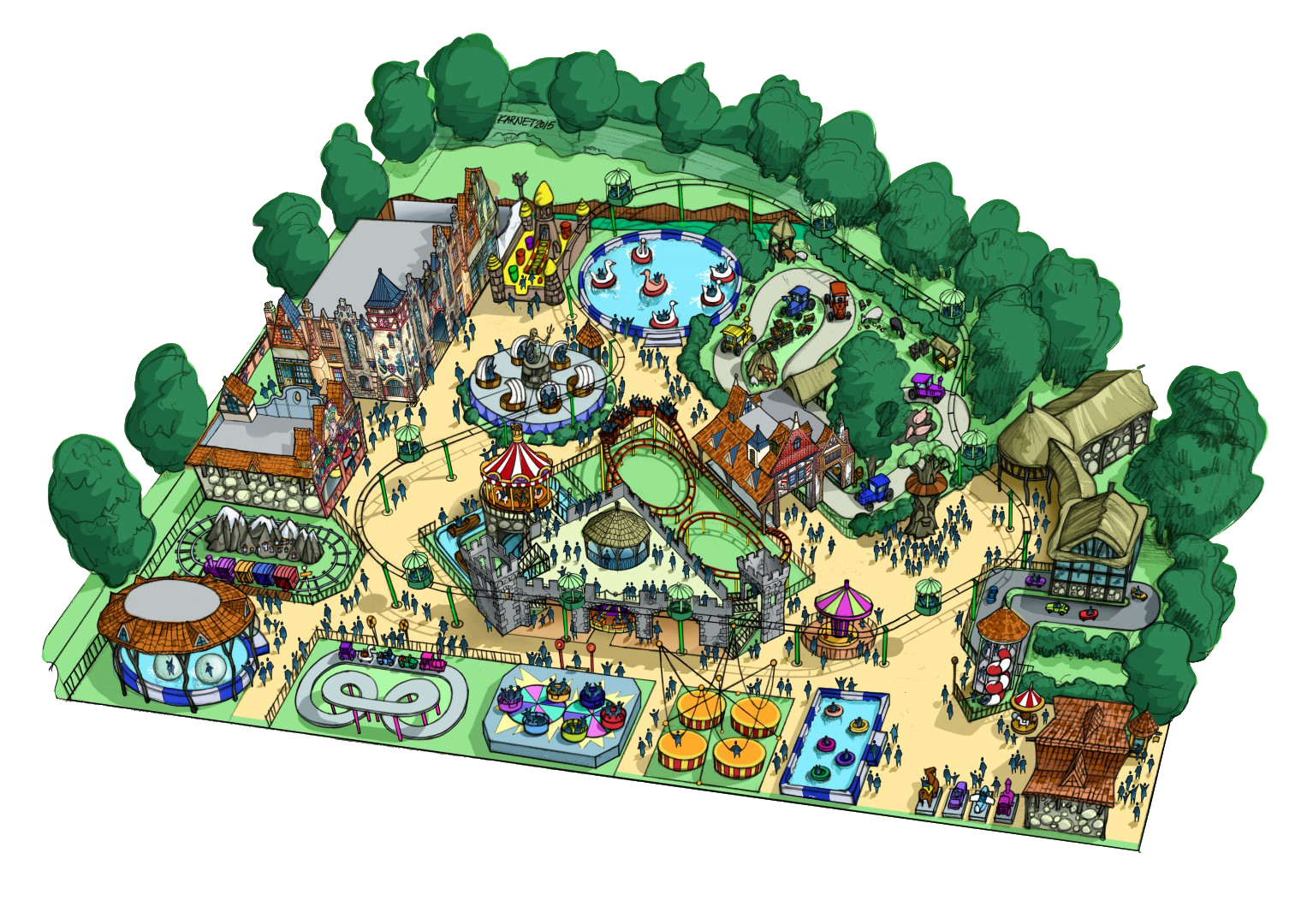 Затем следует непосредственно архитектурное проектирование: тематическое зонирование, составление схем передвижения посетителей, разметка транспортных артерий, расположение аттракционов и прочих объектов, а также ландшафтные и технические решения.